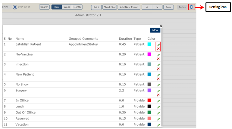 The Calendar / Scheduler helps the user maintain working hours of Facility / Provider. The scheduler
